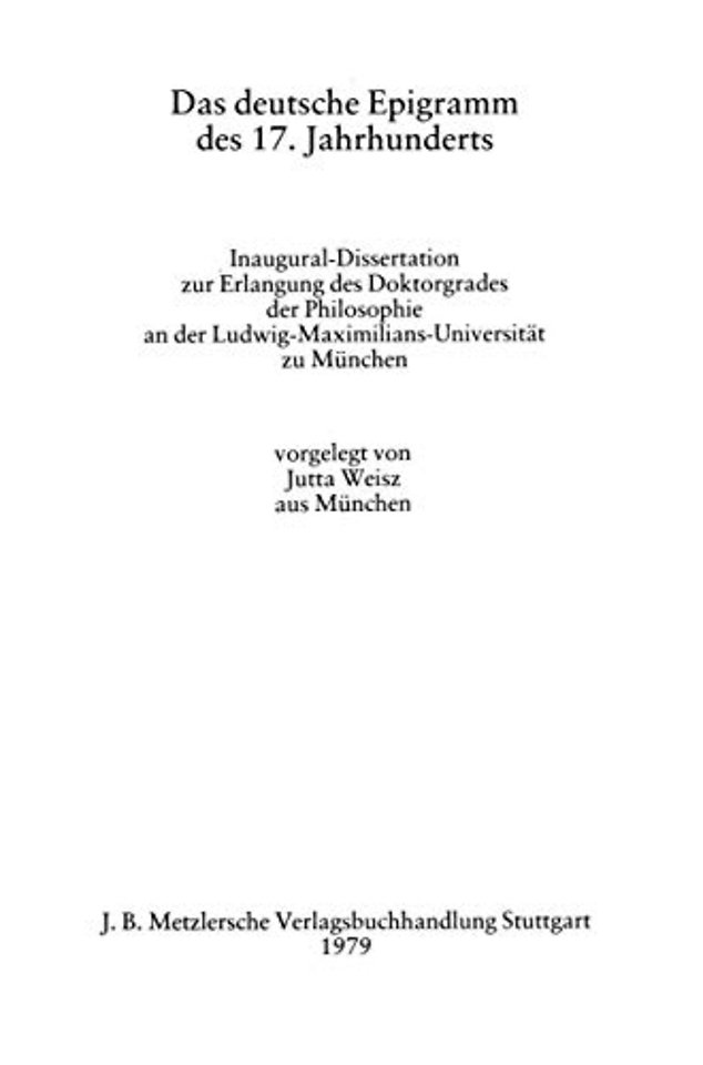 Das deutsche Epigramm des 17. Jahrhunderts